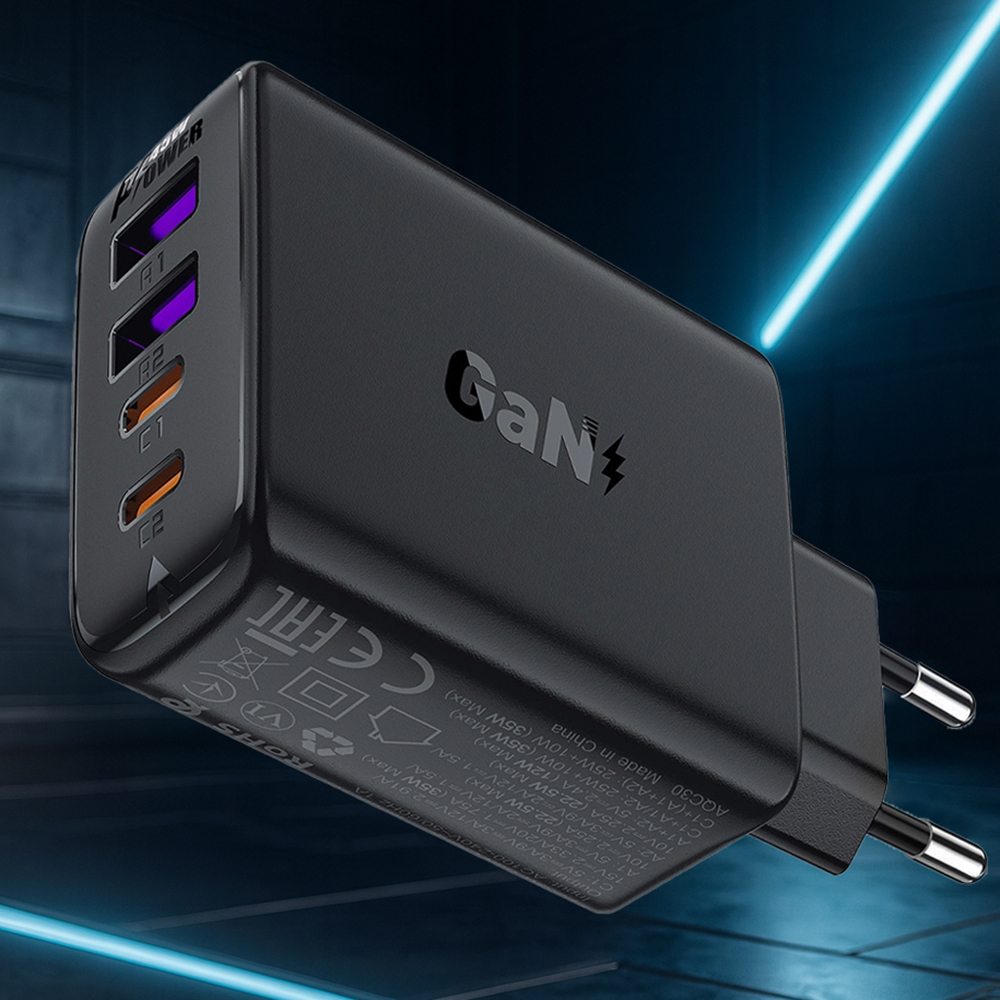 Ο φορτιστής διαθέτει τέσσερις θύρες για την ταυτόχρονη τροφοδοσία πολλών συσκευών, βελτιστοποιώντας τη διανομή ενέργειας και μειώνοντας τον χρόνο φόρτισης.