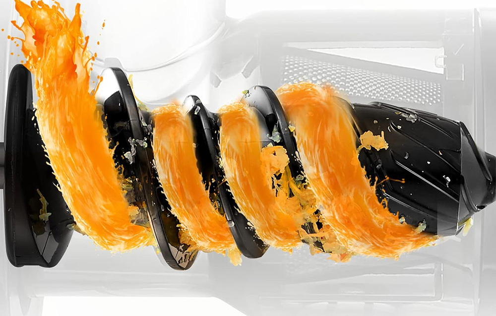 Με μοτέρ που λειτουργεί κάτω από 60 dB, μπορείτε να στύψετε χυμό ακόμα και νωρίς το πρωί χωρίς να ενοχλείτε το νοικοκυριό σας. Τα ενσωματωμένα έξυπνα τσιπ προστατεύουν τη συσκευή από την υπερθέρμανση, εξασφαλίζοντας μεγάλη διάρκεια ζωής και ασφαλή χρήση για χρόνια. Η χρήση ανοξείδωτου χάλυβα 304, υλικού PMMA και διαφανούς περιβλήματος εξασφαλίζει εξαιρετική αντοχή του εξοπλισμού, καθιστά εύκολη την παρακολούθηση της διαδικασίας συμπίεσης και σας δίνει την αίσθηση του πλήρους ελέγχου της συσκευής.