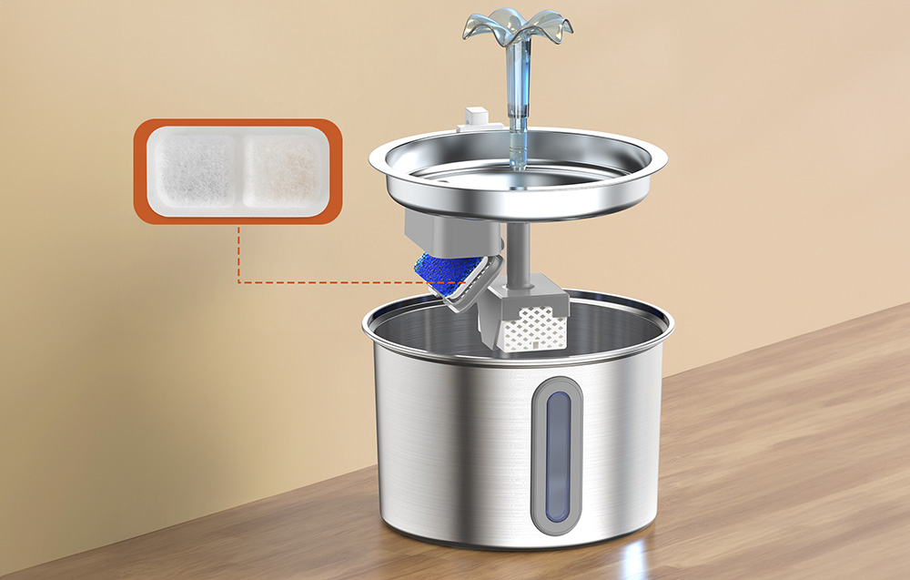 Να έχετε εμπιστοσύνη ότι το νερό που πίνει το κατοικίδιο σας είναι πάντα καθαρό, φρέσκο και ασφαλές για την υγεία. Το φίλτρο σιντριβάνι Oneisall αποτελείται από τρία στρώματα που εξαλείφουν αποτελεσματικά τις οσμές, τα υπολείμματα τροφών, το τρίχωμα, τα βαρέα μέταλλα και άλλες ακαθαρσίες. Με αυτό τον τρόπο δεν χρειάζεται να ανησυχείτε για την κατάσταση του κατοικίδιου σας! Πριν χρησιμοποιήσετε το προϊόν, βυθίστε το σε νερό για δύο λεπτά. Για να εξασφαλίσετε υψηλή απόδοση φιλτραρίσματος, θυμηθείτε να αλλάζετε το φίλτρο τακτικά – τουλάχιστον μία φορά κάθε 4 εβδομάδες.