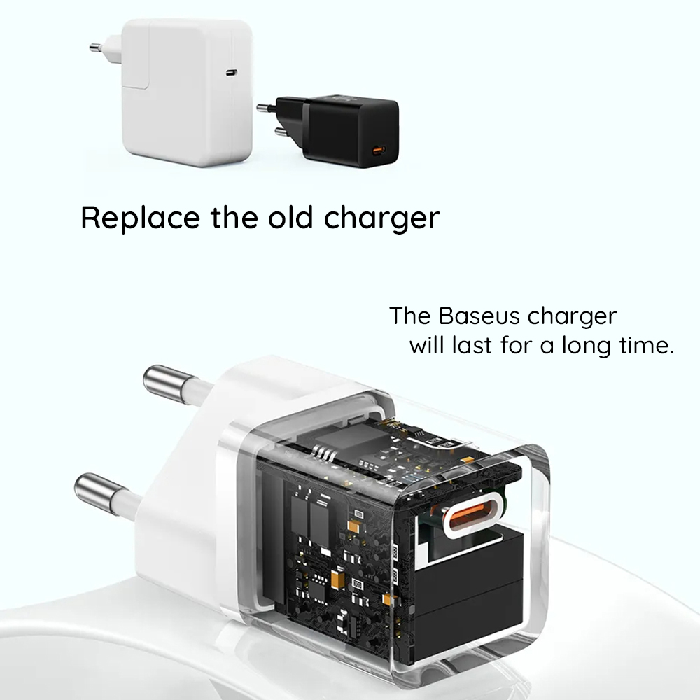 Ο μίνι φορτιστής Baseus είναι εξοπλισμένος με τεχνολογία GaN και έξυπνο έλεγχο θερμοκρασίας που διευκολύνει τη χρήση και προσφέρει προστασία στον εξοπλισμό σας.