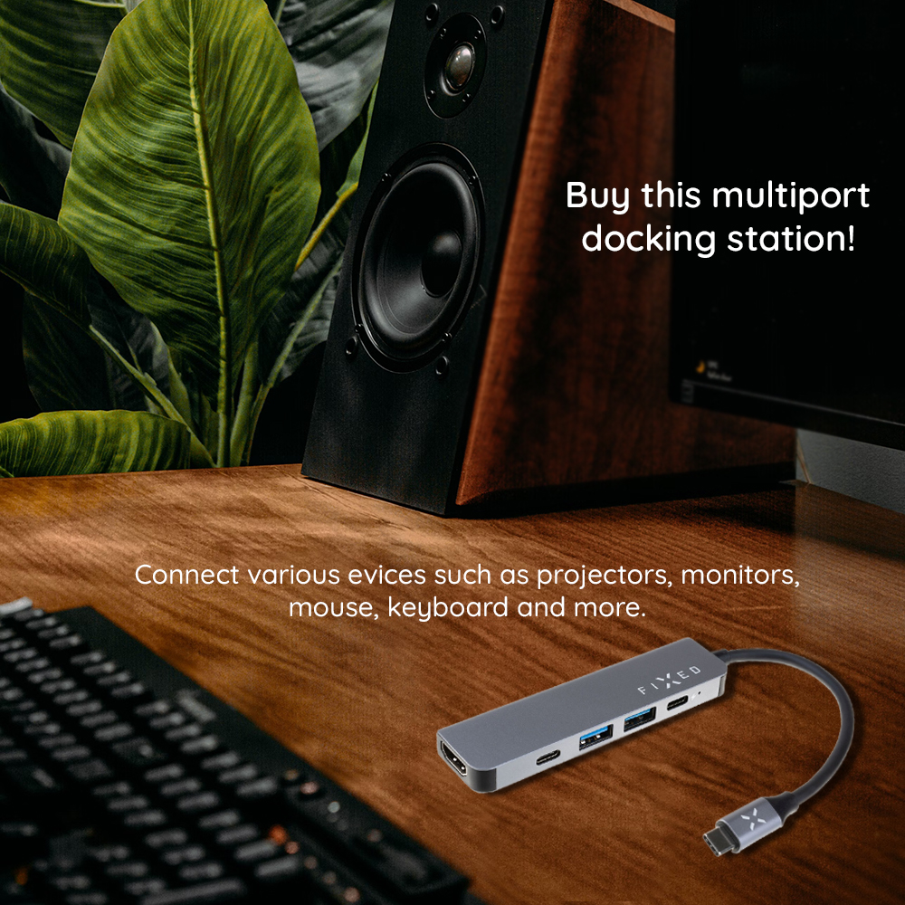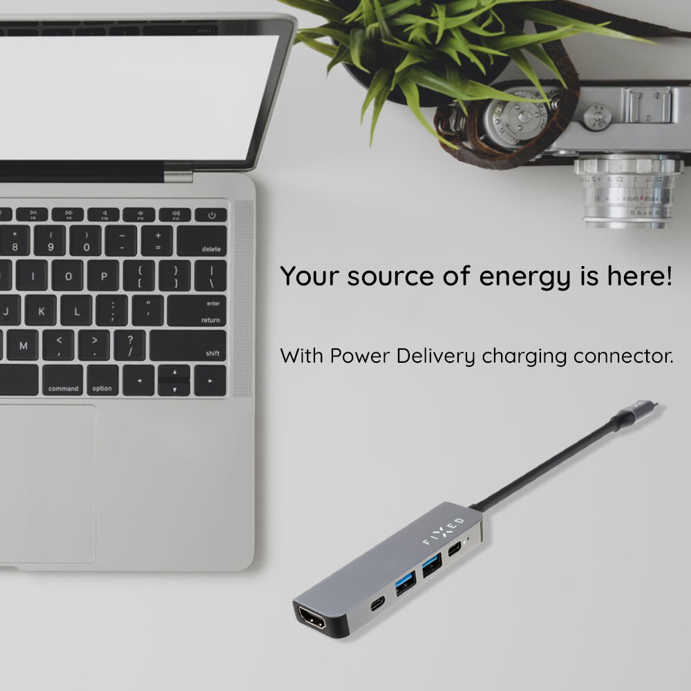 Fixed – Docking Station (FIXHU-MN-GR) – 2 x USB, Type-C, HDMI, Full HD, 5 Gbit/s, 100W – Γκρι