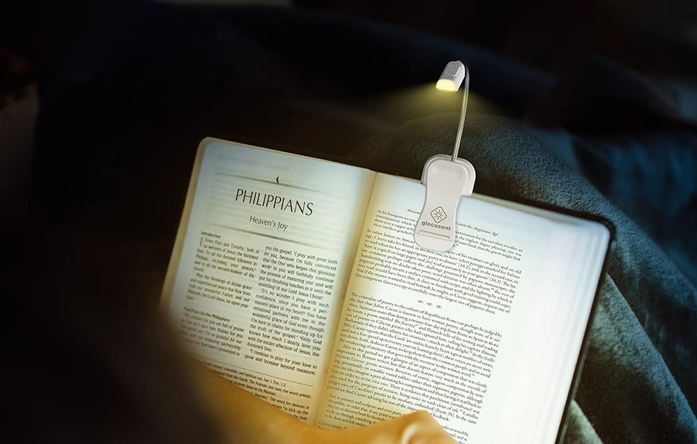 Η λάμπα Glocusent με κλιπ είναι μια καινοτόμος συσκευή, θα σας επιτρέψει να διαβάζετε άνετα βιβλία τα βράδια, ακόμα και σε δωμάτια με χαμηλό φωτισμό. Με μοναδικό σχεδιασμό εμπνευσμένο από το φύλλο ιτιάς, τα 10 LED είναι τοποθετημένα για να παρέχουν ομοιόμορφο φωτισμό. Τρία επίπεδα φωτεινότητας σάς επιτρέπουν να προσαρμόσετε το φως, από μια φωτεινή δέσμη έως μια απαλή λάμψη που δεν θα ενοχλεί τον ύπνο των άλλων κοντά.