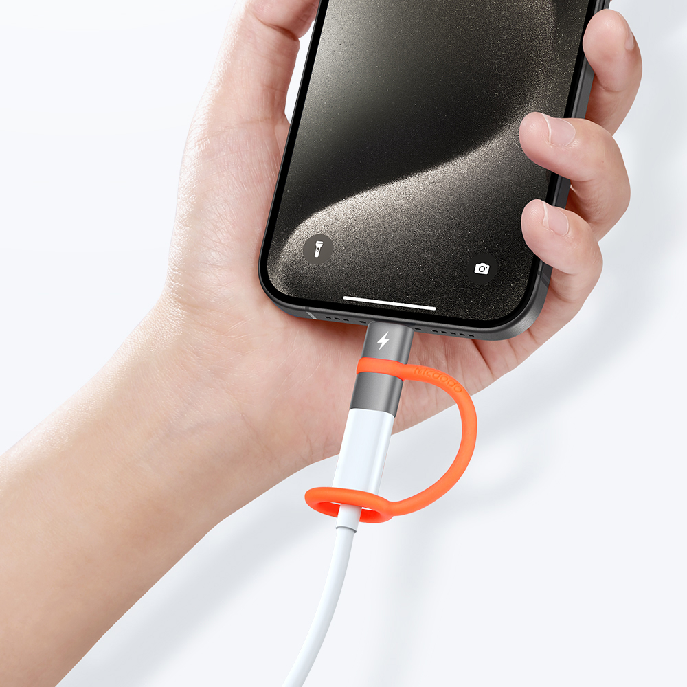 Με τη χρήση του αντάπτορα, το σιλικόνινο στοιχείο προσαρμόζεται απαλά στο σχήμα του καλωδίου που συνδέεται, δημιουργώντας ένα μικρό εφέ στήριξης.