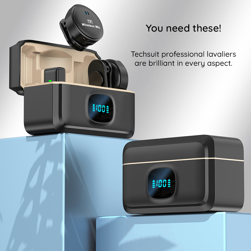 Techsuit – (2 pack) Ασύρματο μικρόφωνο Lavalier (LW5) Lightning, Μαύρο