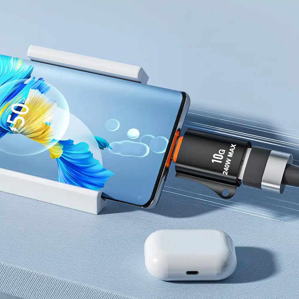 Techsuit – Premium OTG Adapter HyperPort (A1) – USB 3.0 Θηλυκό σε Type-C Αρσενικό, 10Gbps, 240W, Κράμα Αλουμινίου – Μαύρο / Πορτοκαλί
