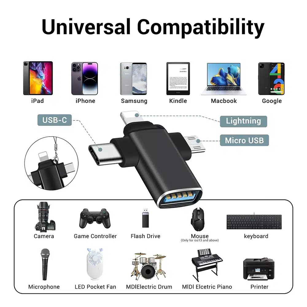 Συνδέσεις: Αρσενικό USB-C, Αρσενικό Lightning, Αρσενικό Micro-USB, Θηλυκό USB;