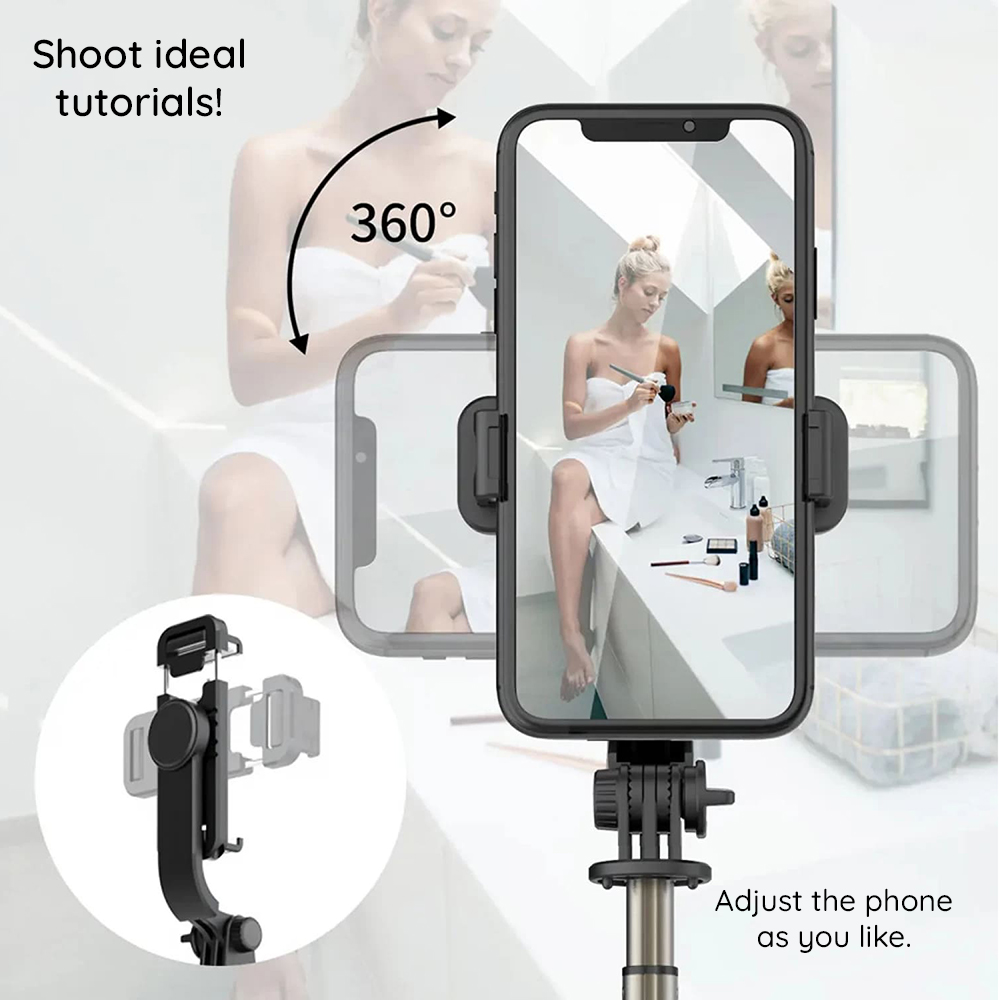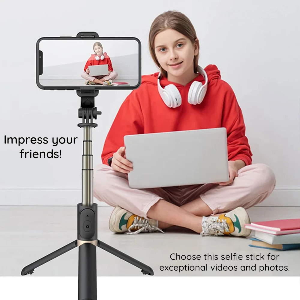 Techsuit – Selfie Stick (Q03) – Stable Tripod with Bluetooth Remote Control, Aluminium Alloy, 360 Rotation, 74cm – Black
