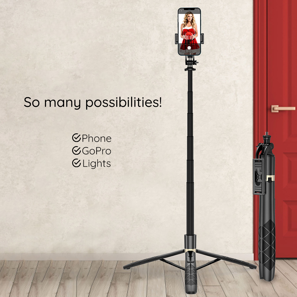 Απαθανατίστε τις στιγμές που περάσατε σε ταξίδια με τη βοήθεια αυτού του selfie stick με τηλεχειριστήριο και τρίποδο που προσφέρει η Techsuit. Σας επιτρέπει να συνδέσετε μια κάμερα GoPro ή ένα τηλέφωνο. Τι περισσότερο θα μπορούσατε να θέλετε;