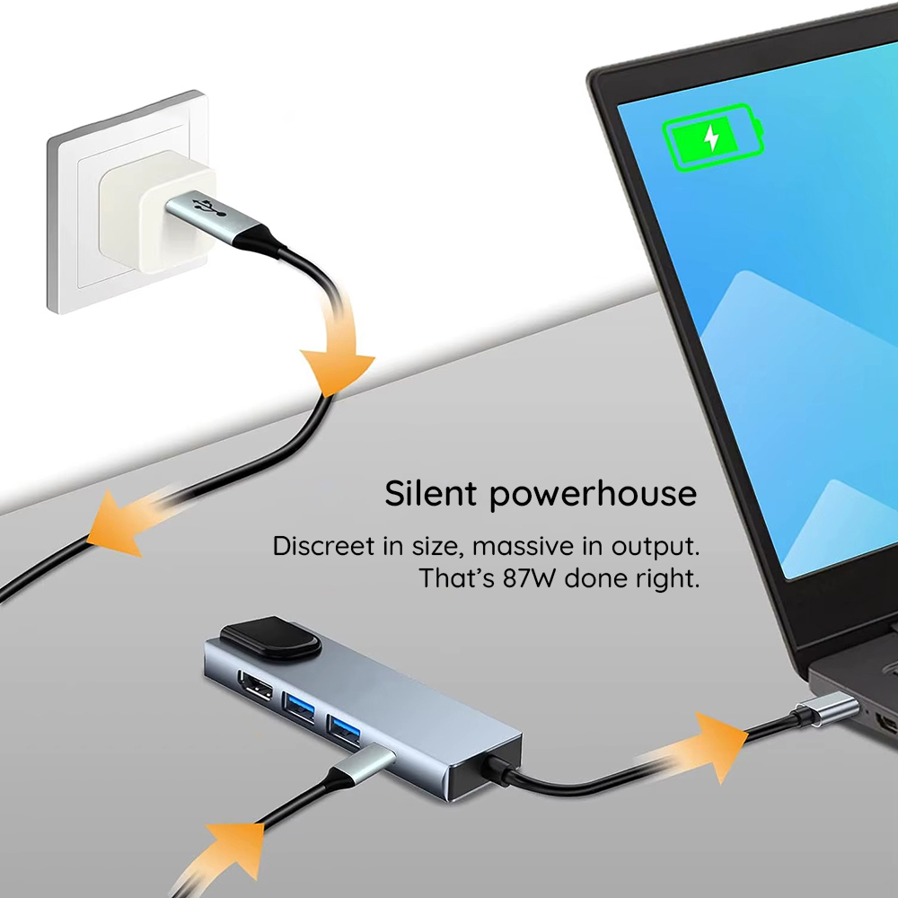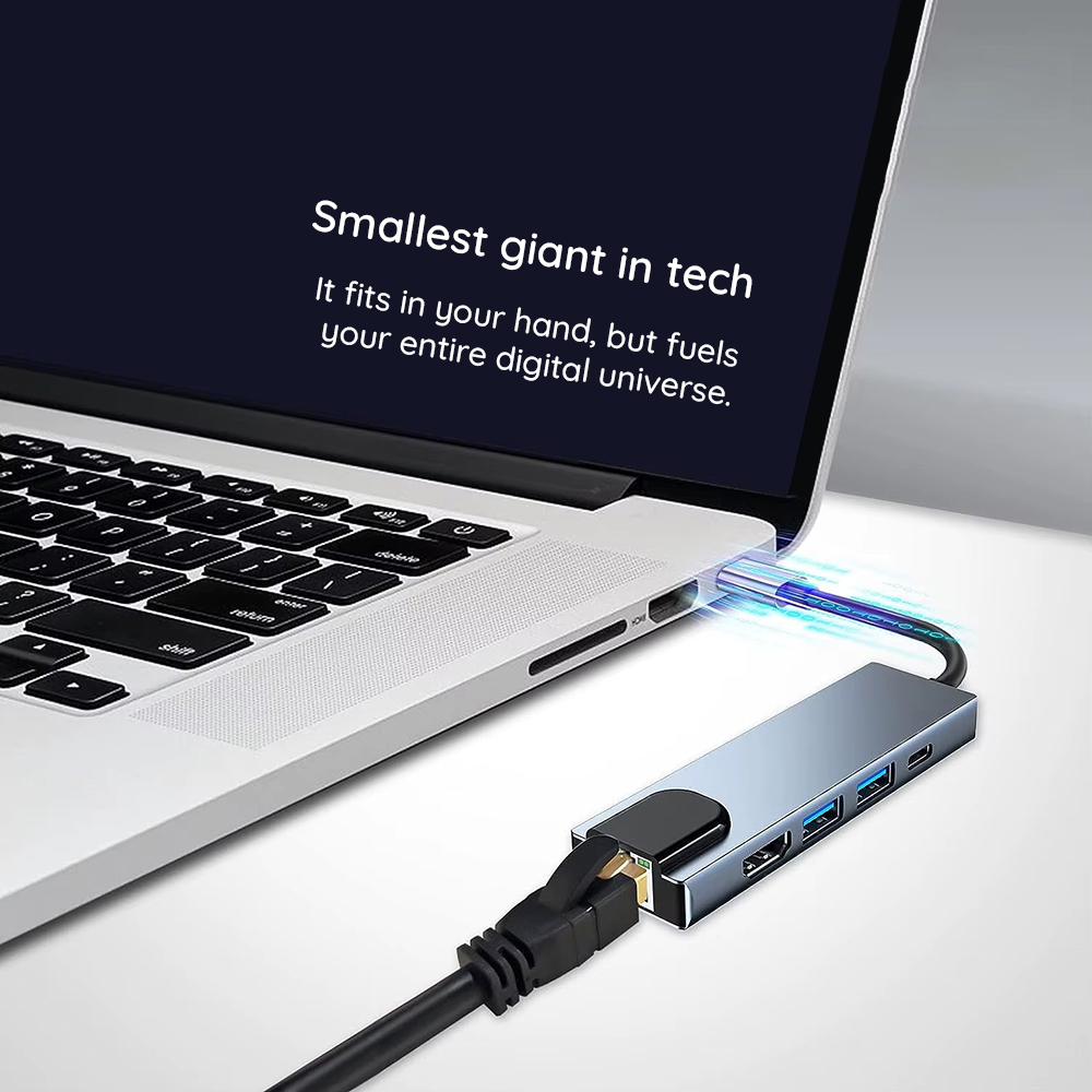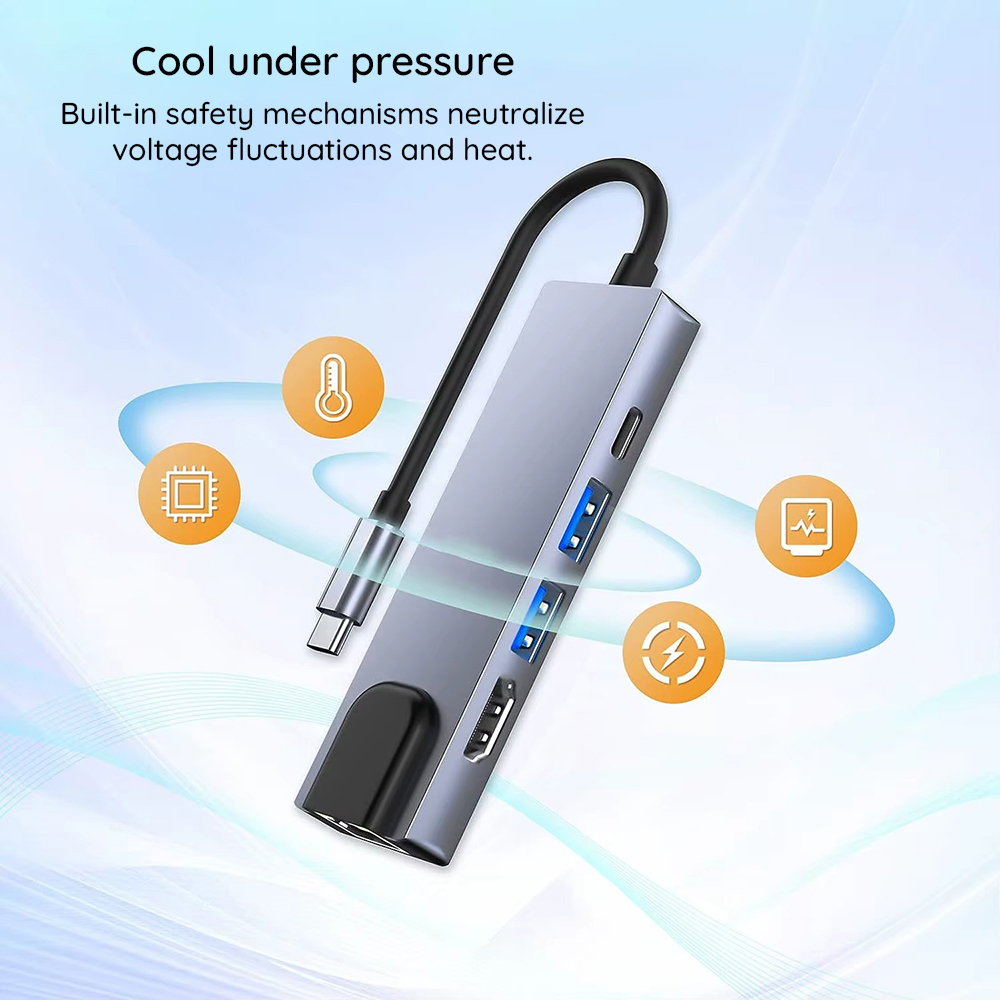 Techsuit – Σταθμός σύνδεσης NetBridge 5 σε 1 (H1) – Τύπου-C σε 1x USB2.0, 1x USB3.0, 1x Τύπου-C, 1x HDMI, 1x RJ45, PD87W, 4K@30Hz – Γκρι