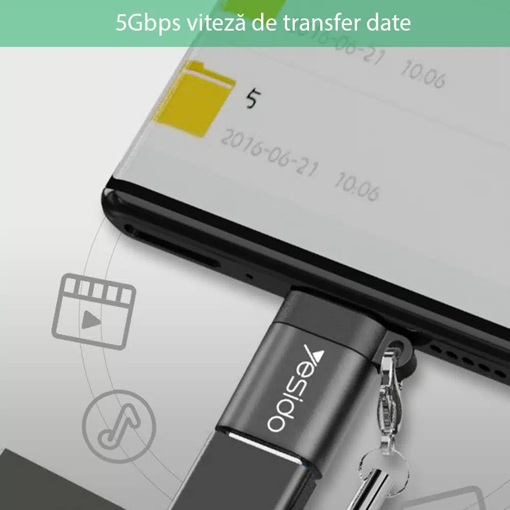 Yesido – Otg Adapter (gs06) – Type-C To Usb 3.0, Plug & Play, 5gbps – Black